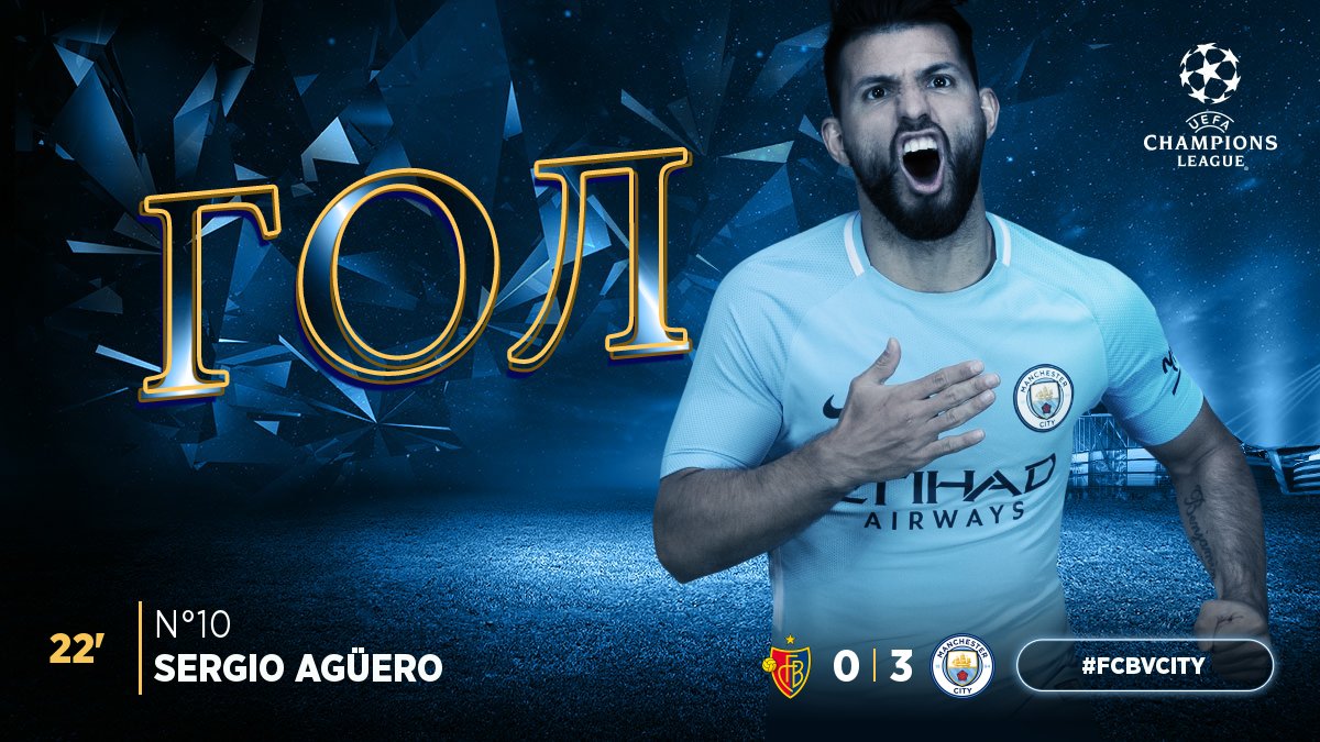23' Рикошет от игрока Базеля, мяч отскакивает к Агуэро, тот спрятавшись от вратаря за Сучи, пробивает и вратарь не реагирует на удар. 3-0!