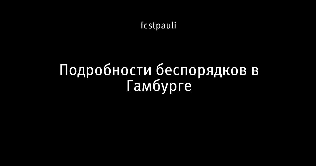 16 февраля 2011, 17:22 Подробности беспорядков в Гамбурге Этот пост написан пользователем Sports.ru, начать писать может каждый болельщик (сделать это можно здесь). Сегодня перенесенный матч Гамбург-Санкт Паули Санкт-Паули - Менхенгладбах Автор fcstpauli Этот пост опубликован в блоге на Трибуне Sports.ru. Присоединяйтесь к крупнейшему сообществу спортивных болельщиков! Другие посты блога We love St.Pauli