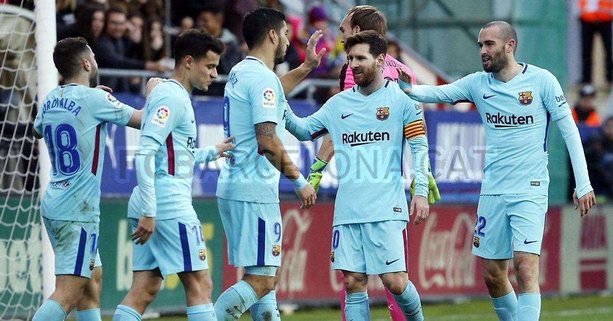 Перед этим матчем впервые в этом году у каталонцев появился недельный тренировочный цикл. В теории это означало, что игроки Барселоны подойдут к игре с Эйбаром свежими. Потому что в матче с Хетафе было видно, что игроки пребывали не в лучшем состоянии. Вальверде после матча омтетил, что футболисты играли без души, и нуждаются они скорее в отдыхе психологического плана, нежели физического. Но начало матча показало продолжение предыдущего матча на Камп Ноу: игрокам опять не хватало взрывной силы при атаке, к тому, же прибавился брак в передачах. Этому, конечно способствовал агрессивный высокий прессинг соперника, но обычно мастеровитая защита и полузащита легко выходит из-под него в матчах с командами второго и третьего эшелона. К 65 минуте Эйбар больше владел мячом и сделал почти одинаковое количество пасов с каталонцами, вы сможете вспомнить подобный случай с командами такого уровня. На протяжении полутора таймов они владели инициативой, и иногда Барсе приходилось просто выносить мяч в ситуациях, когда они обычно стараются его сохранить. Все изменилось после удаления и тогда, конечно, у каталонцев появились кучи голевых моментов.