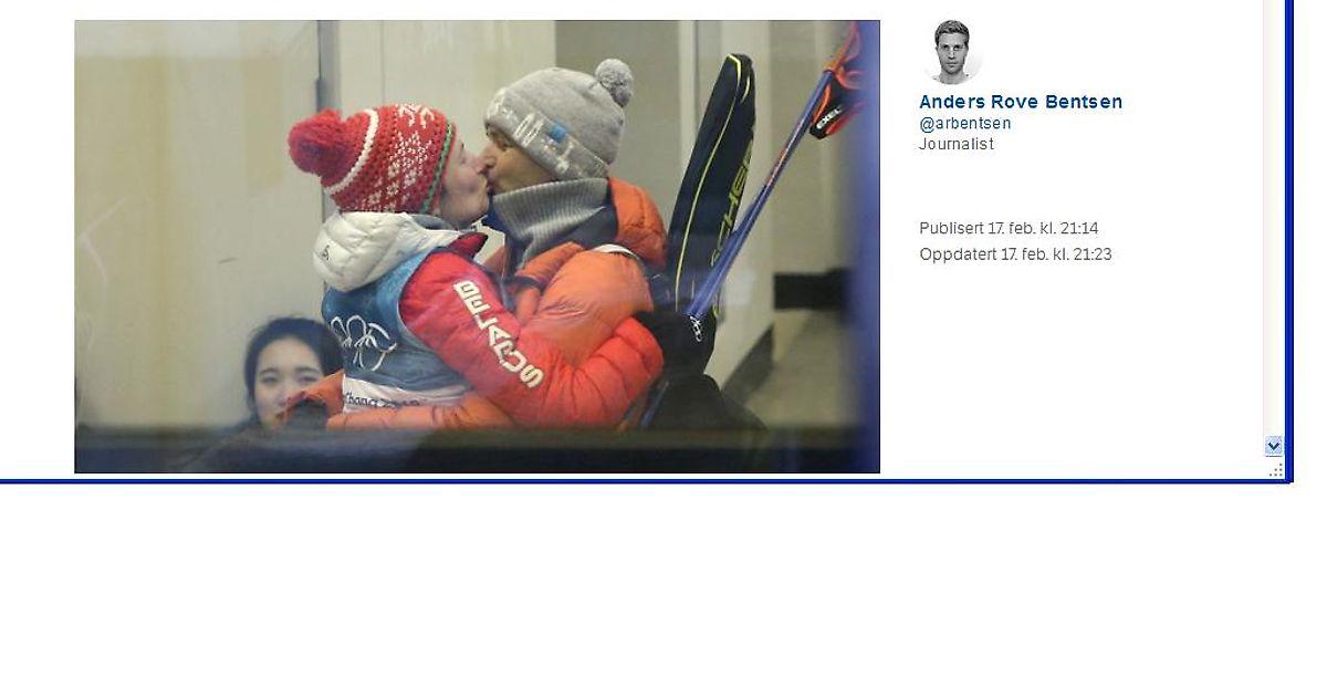 PYEONGCHANG (NRK): – Han løp opp og ned bakken hele tiden, sier Darja Domratsjeva om Ole Einar Bjørndalens innsats under sølvløpet.SØLVKYSS: Ole Einar Bjørndalen gratulerte Darja Domratsjeva med et kyss etter OL-sølvet.Etter to uker med massivt press fikk hviterussiske Darja Domratsjeva endelig sin etterlengtede OL-medalje lørdag.