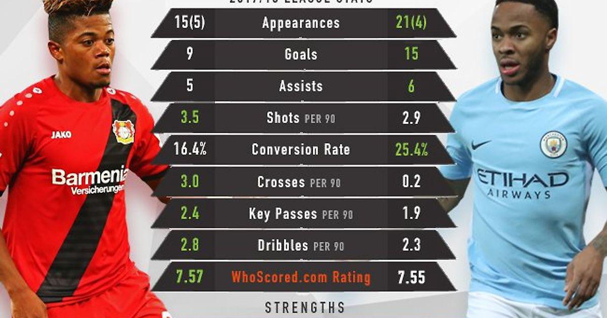 Сравнительная статистика Леона Бэйли и Рахима Стерлинга от WhoScored