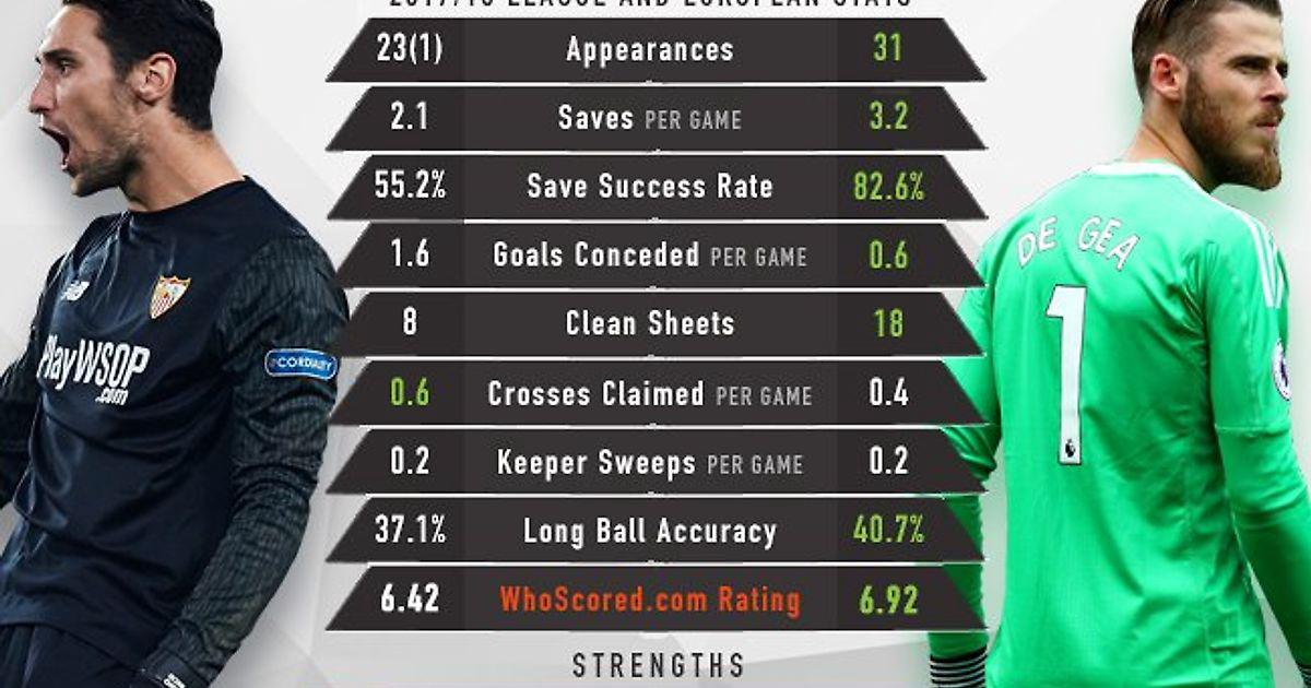 Сравнение Серхио Рико и Давида де Хеа от WhoScored