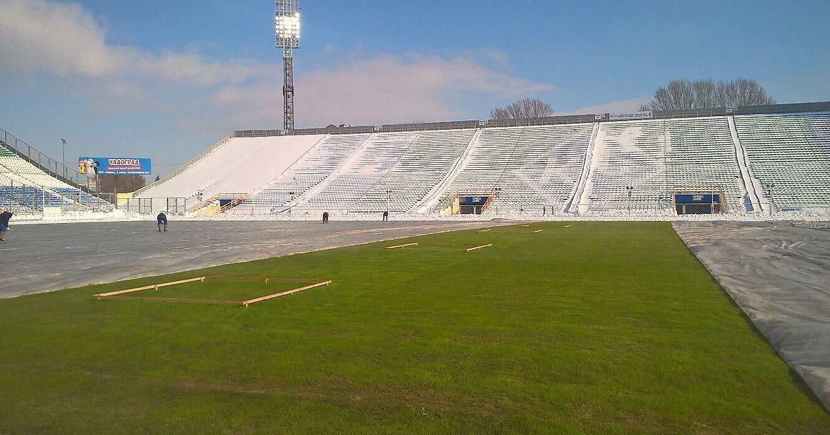 Прямо сейчас поле на стадионе Крыльев Советов выглядит вот так. Комиссия, приезжавшая сегодня осмотреть стадион, осталась довольна и должна одобрить проведение матча в Самаре.
