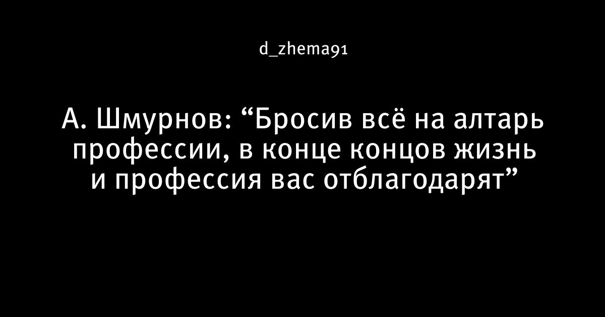 А. Шмурнов: “Бросив всё на алтарь профессии, в конце концов жизнь и профессия вас отблагодарят”