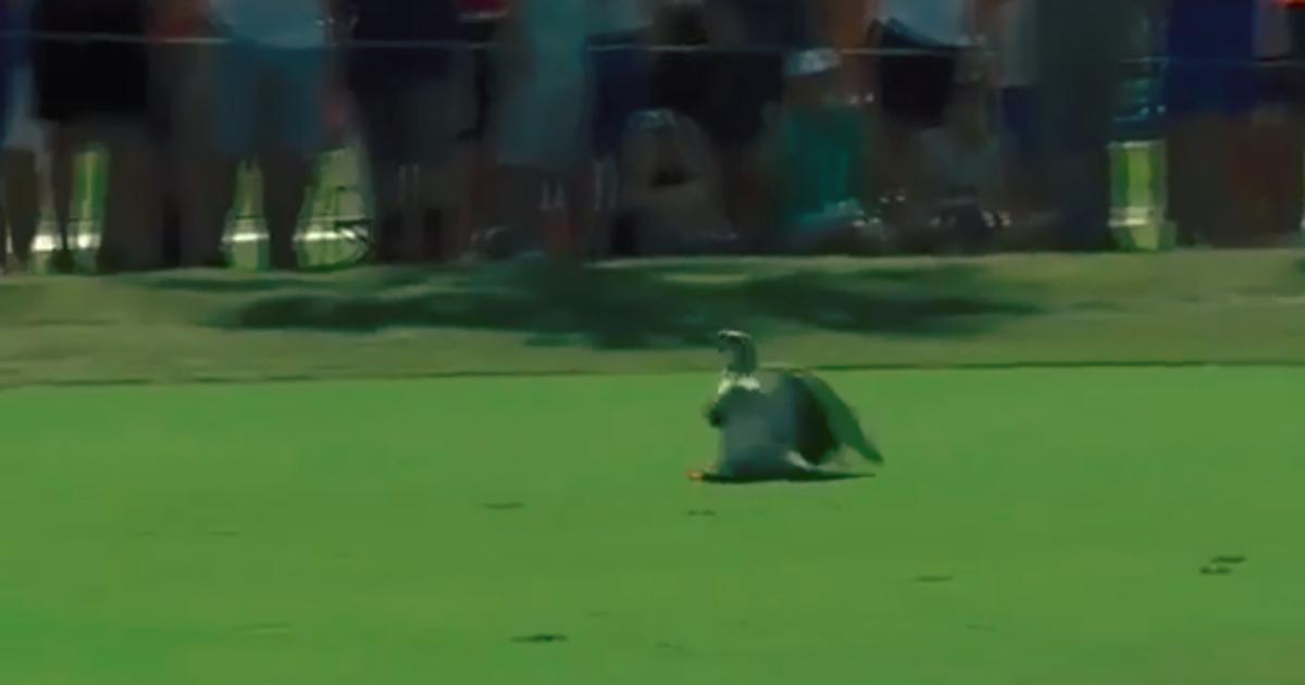 Тайгер Вудс случайно подбил утку во время матча. Птица не ожидала такого подвоха