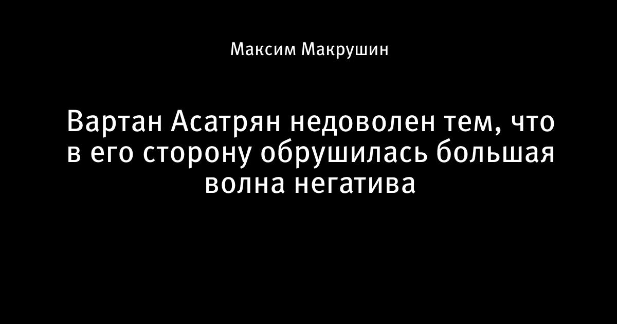 Вартан Асатрян недоволен тем, что в его сторону обрушилась большая волна негатива