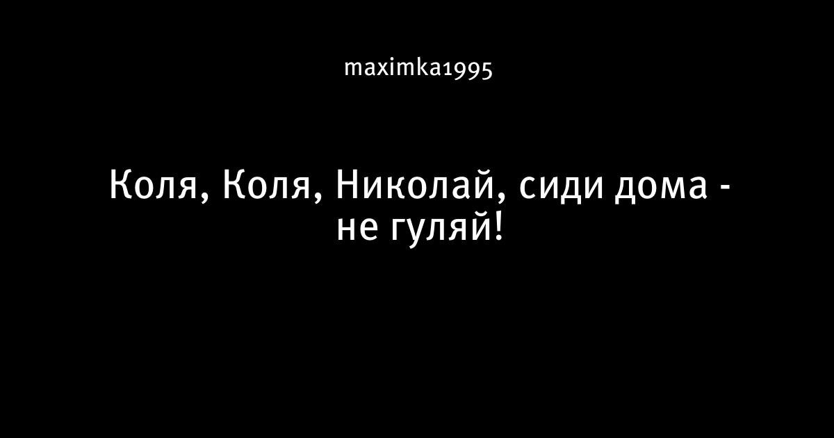 Коля, Коля, Николай, сиди дома - не гуляй!