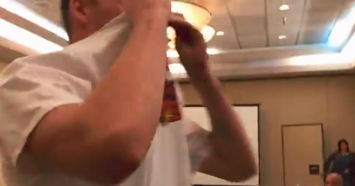.@norbertasgiga thought he was meeting with the coaches to watch film when he arrived in Evansville for the @OVCSports Tournament. Instead, he got a surprise from someone he hasn’t seen since moving to the United States in 2013. pic.twitter.com/P0NELC0sRT