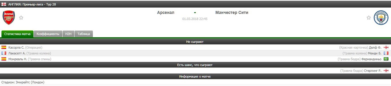 Да просто бы написали что Арсенал ждет очередной разгром на глазах у своих болельщиков !!! Меньше описание статистики и экономия времени !!! Я как давний болельщик Арсенала чудес в сегодняшнем матче не жду от них , а вот от Сити в полне , может подарят нам несколько моментов или накидают полную авоську мячей !!!