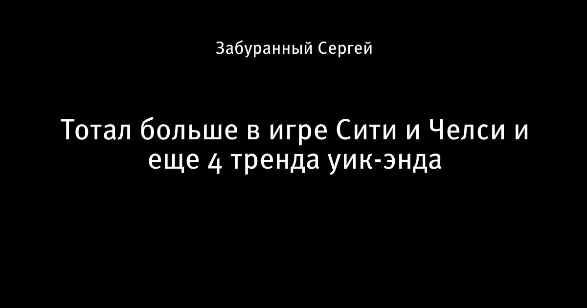 Тотал больше в игре Сити и Челси и еще 4 тренда уик-энда