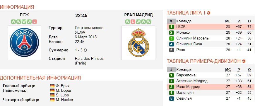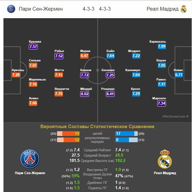 Статистическое превью главного противостояния 1/8 Лиги Чемпионов ПСЖ - Реал Мадрид