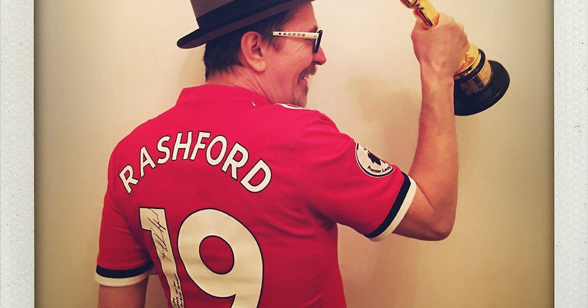 Официальный твиттер «Манчестер Юнайтед» опубликовал фото актера Гэри Олдмена со статуэткой «Оскар». На актере — майка с номером Маркуса Рэшфорда. «Лучший способ отметить победу? Получить майку любимого игрока «МЮ», конечно», гласит подпись.