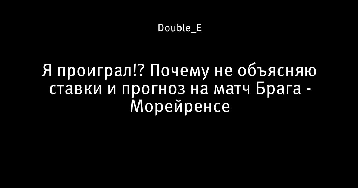 Я проиграл!? Почему не объясняю ставки и прогноз на матч Брага - Морейренсе