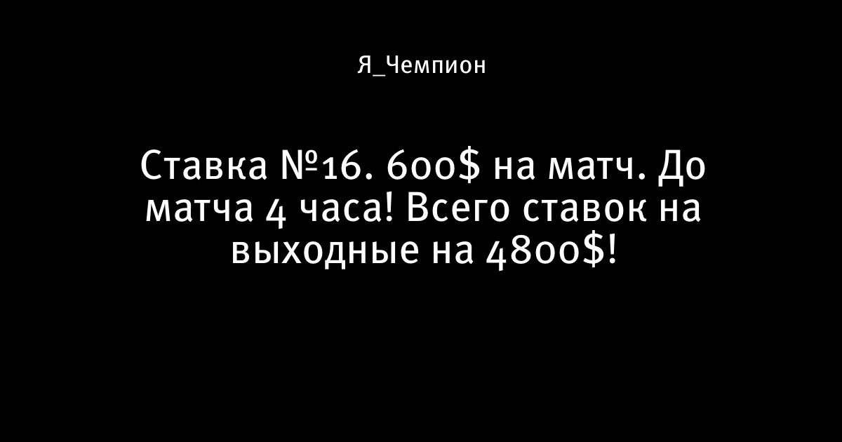 Ставка №16. 600$ на матч. До матча 4 часа! Всего ставок на выходные на 4800$!