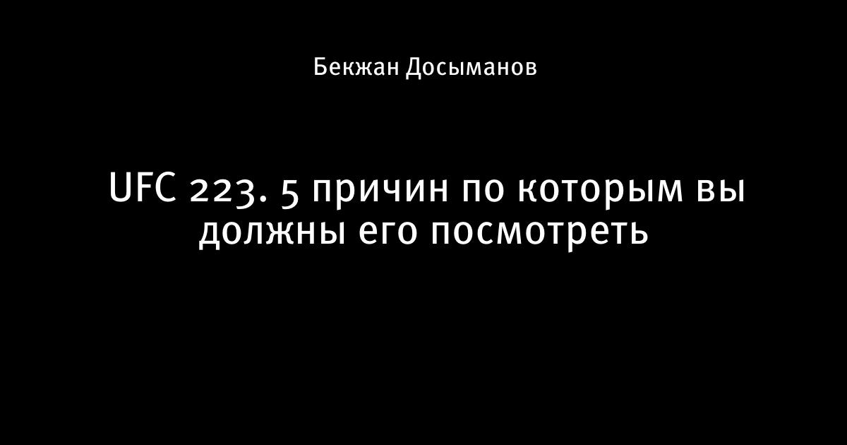 Чуть меньше месяца осталось до начала грандиозного карда UFC 223. В этой статье я помогу Вам разобраться и приведу 5 причин того, чем действительно крут данный номерной турнир, который в своем текущем созыве объединяет два титульных поединка, двух бывших чемпионов которые снова попытаются встать на былые победоносные рельсы, трех экс-претендентов на заветный пояс, трех отечественных бойцов, интересных нашему зрителю и одной просто легендарной личности.