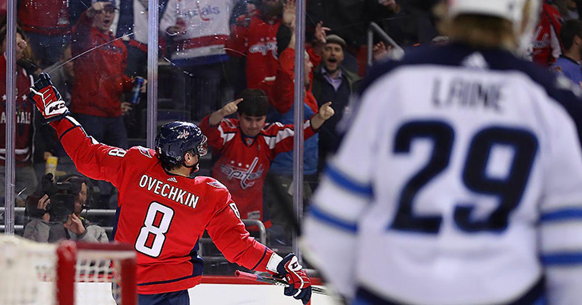 Финн и русский подходили к началу матча с равным счетом 40:40, и Овечкин вырвался вперед довольно быстро – в начале первого периода «Джетс» остались втроем, и Александр забил гол, который вы уже видели примерно 178 миллиардов раз:
