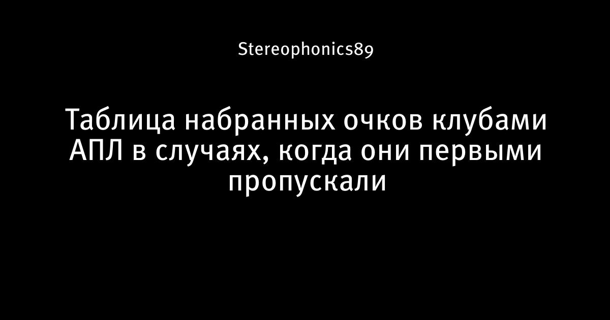 Таблица набранных очков клубами АПЛ в случаях, когда они первыми пропускали