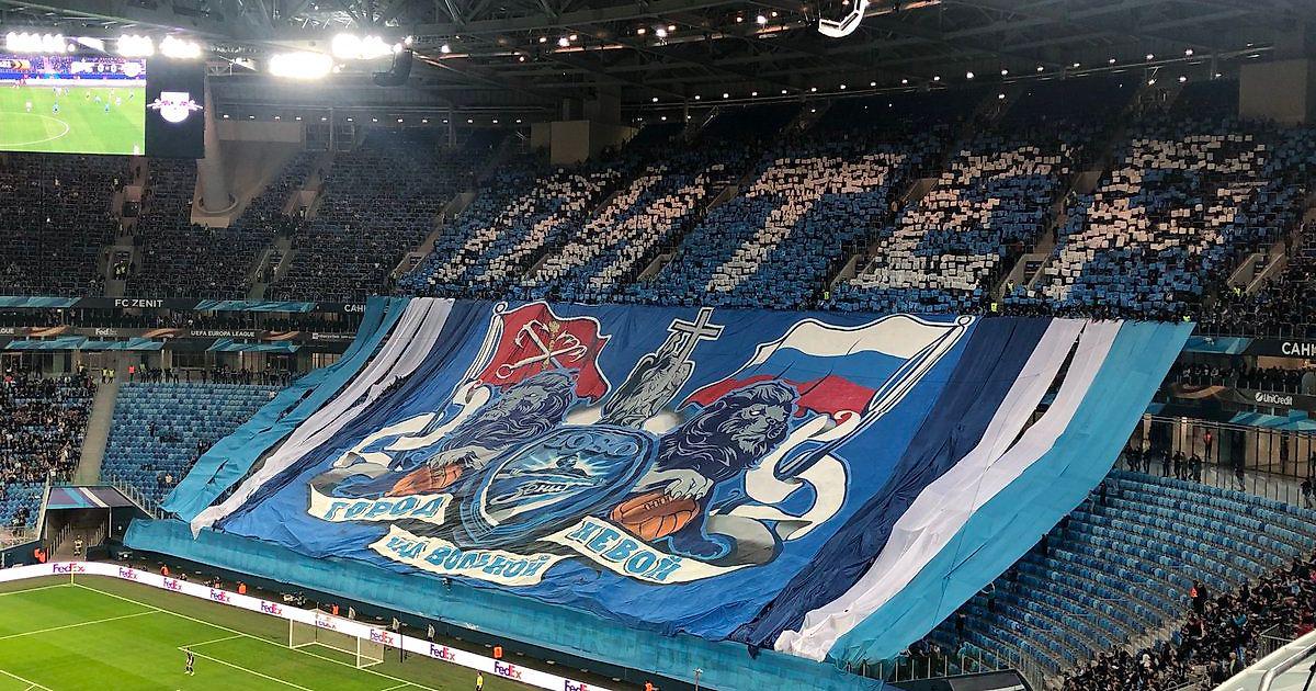 «Зенит» играет с «Лейпцигом» в ответном матче Лиги Европы, а болельщики вывесили баннер про город.