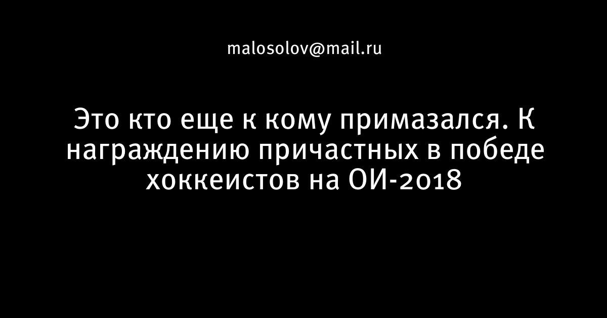 Это кто еще к кому примазался. К награждению причастных в победе хоккеистов на ОИ-2018
