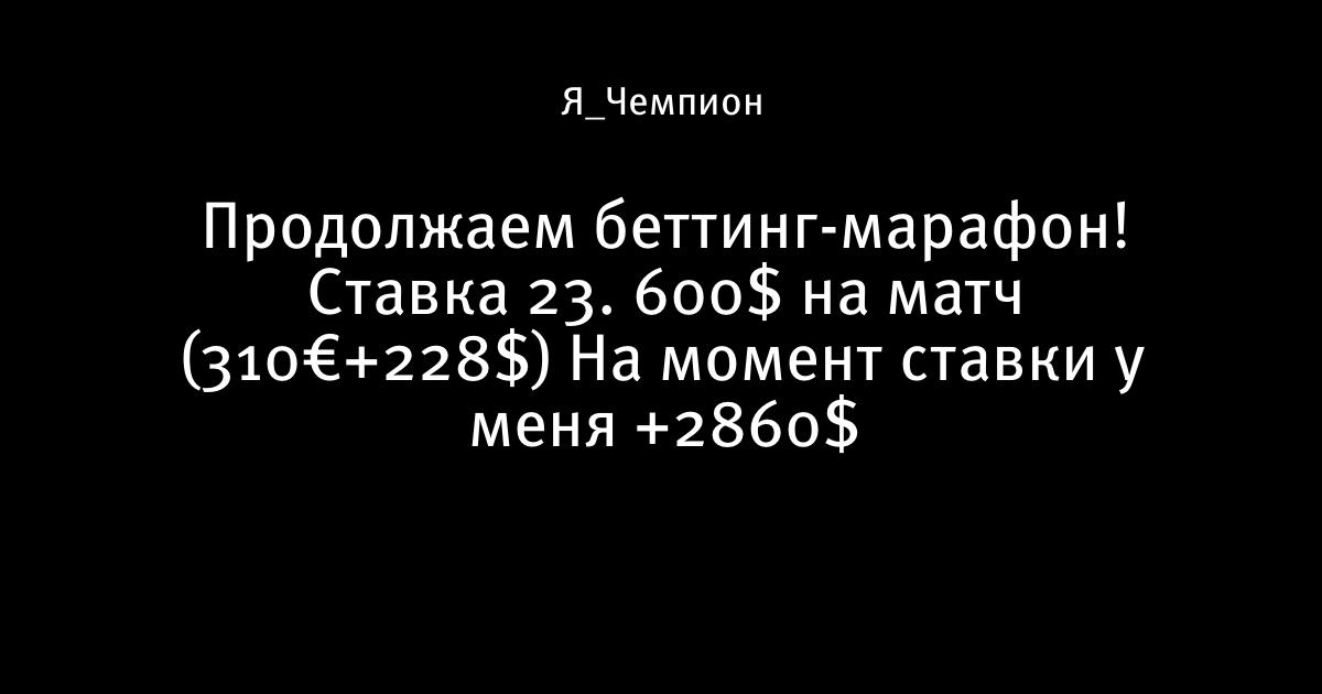Продолжаем беттинг-марафон! Ставка 23. 600$ на матч (310€+228$) На момент ставки у меня +2860$