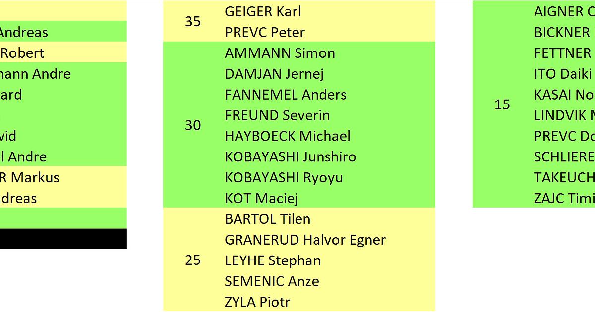 Бонусы за квалификацию: Стох - 3 очка, Стьернен - 2 очка, Крафт - 1 очко