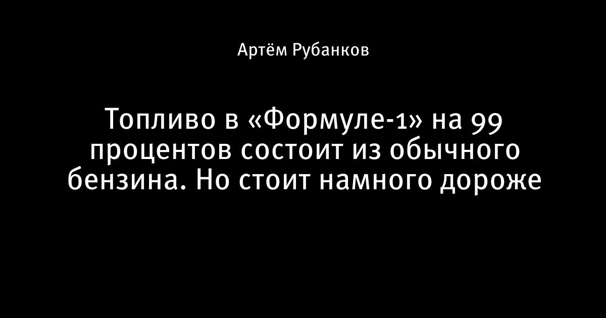Топливо в «Формуле-1» на 99 процентов состоит из обычного бензина. Но стоит намного дороже