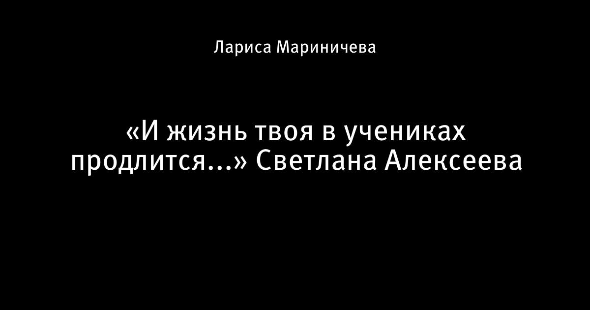 «И жизнь твоя в учениках продлится...» Светлана Алексеева