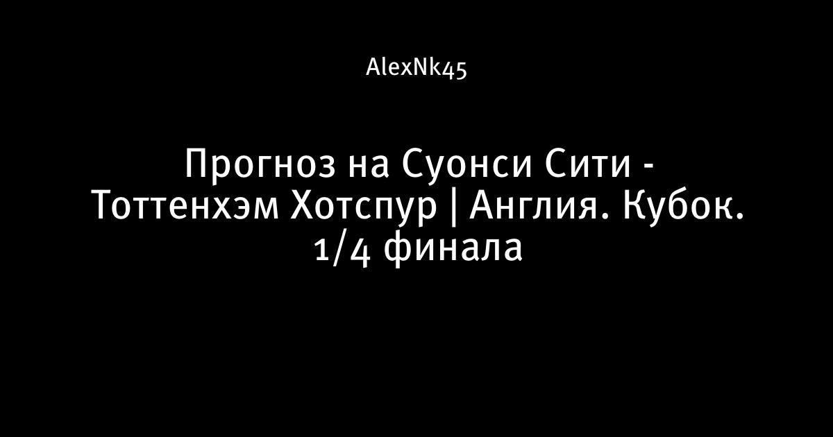 На очереди прогноз на Суонси Сити - Тоттенхэм Хотспур от типстера ахилл37 и это 1/4 финала Кубка Англии. Матч начнется сегодня в 15:15 по московскому времени.
