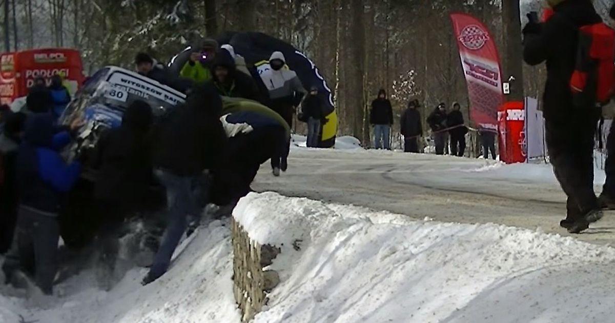 Польские болельщики на руках вытащили раллийную машину из кювета