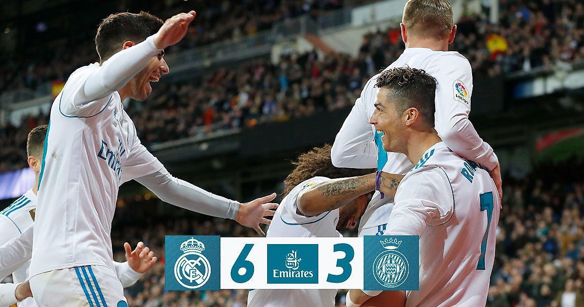 В матче 29-го тура испанской Примеры Мадридский Реал выиграл дома у «Жироны» 6-3. Покером отличился Криштиану Роналду, а также по одному голу на свой счет записали Лукас Васкес и Бейл.