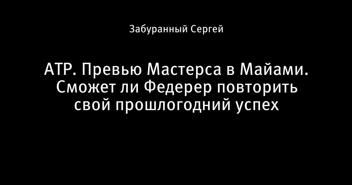 АТР. Превью Мастерса в Майами. Сможет ли Федерер повторить свой прошлогодний успех