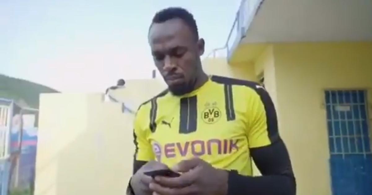 Болт появился на видео в именной футболке «Боруссии» под девятым номером.