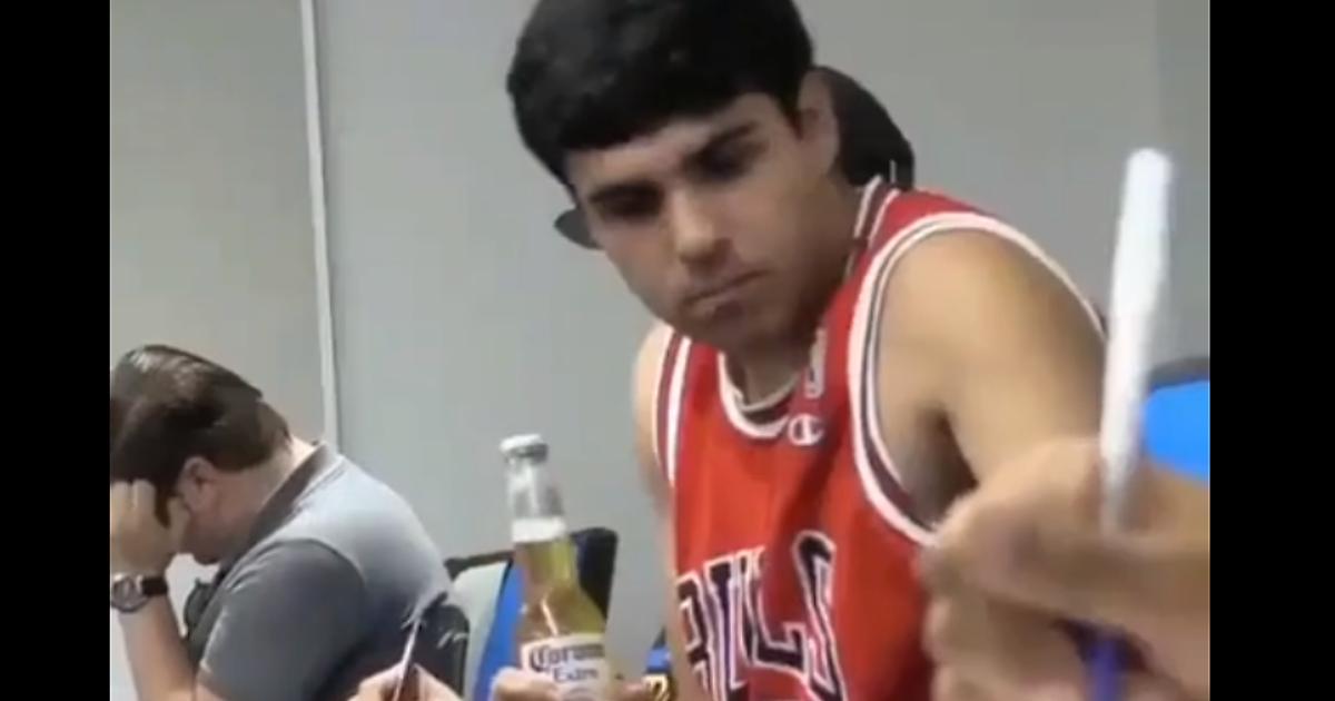 Один студент в джерси «Чикаго» с 23-м номером показал, как надо вести себя, когда хочешь пропустить бутылочку. Фанат Берда точно не понял, как такое возможно!
