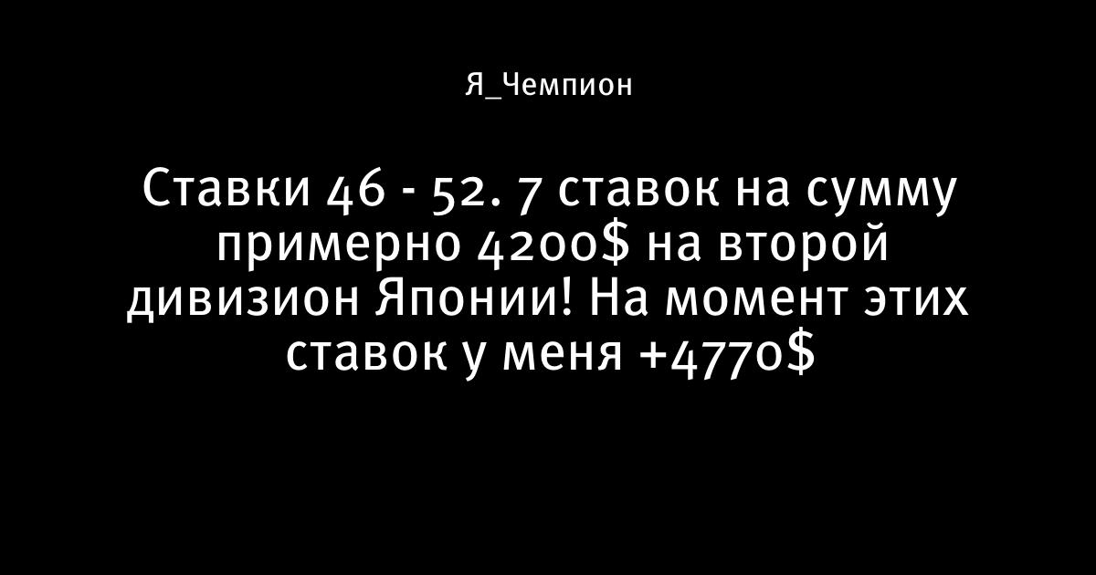 Ставки 46 - 52. 7 ставок на сумму примерно 4200$ на второй дивизион Японии! На момент этих ставок у меня +4770$
