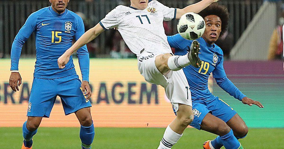 Начнём, пожалуй, с нашей сборной. Об этом матче можно сказать одно: "Это фиаско!" Наша сборная сыграла относительно неплохой первый тайм. А вот вторая часть встречи была отвратительной для нашей сборной, что, конечно, не скажешь про бразильцев. Избранные (так называют бразильцев) забили 3 мяча за пятнадцать минут и практически не дали создать опасных моментов россиянам. С такой игрой нашей сборной нечего делать на домашнем мундиале. Ну, а Игорь Акинфеев вновь доказал, что он один из лучших голкиперов не только России, но и мира. Несмотря на три пропущеных мяча был лучшим игроком нашей команды.