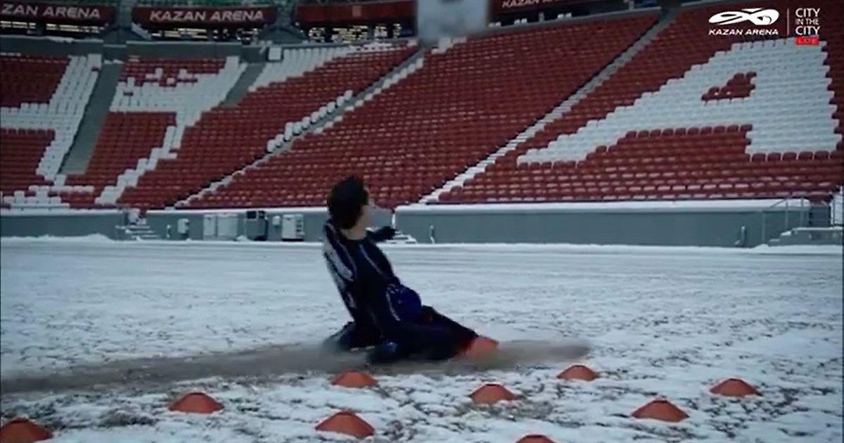 В начале ролика один из героев бегает в бутсах по заснеженному и неукрытому газону, убивая его своим эффектным проездом на коленях, затем трое парней устраивают небольшую разминку с мячом. Всё бы ничего, но действие это происходит в -13 градусов мороза. Казалось, что трава в такую погоду должна спать, укрывшись одеялом в виде специальной плёнки.