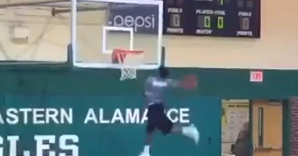 Парень участвует в Слэм-Данк контесте среди колледжей.