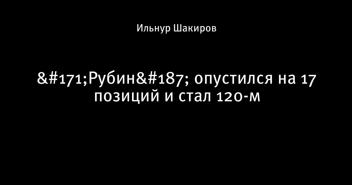 «Рубин» опустился на 17 позиций и стал 120-м