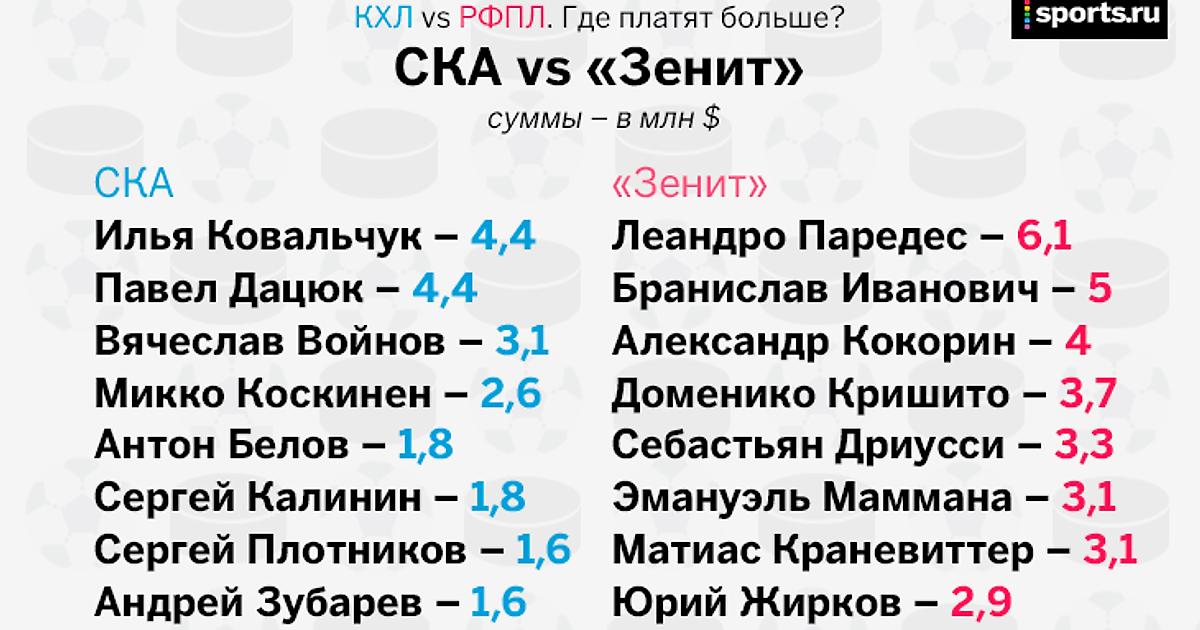 Где платят больше – в КХЛ или РФПЛ?