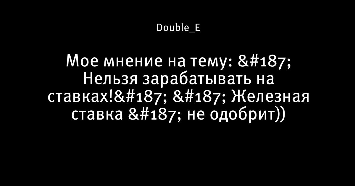Мое мнение на тему: » Нельзя зарабатывать на ставках!» » Железная ставка » не одобрит))