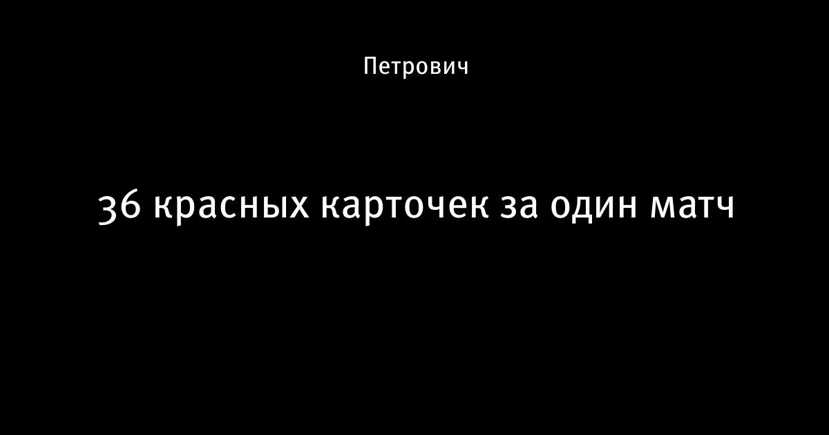 4 марта 2011, 19:13 36 красных карточек за один матч Все, кого не взяли в авторы, пишут в форум Телевизор 3.0. Автор Петрович Этот пост опубликован в блоге на Трибуне Sports.ru. Присоединяйтесь к крупнейшему сообществу спортивных болельщиков! Другие посты блога Телевизор 3.0