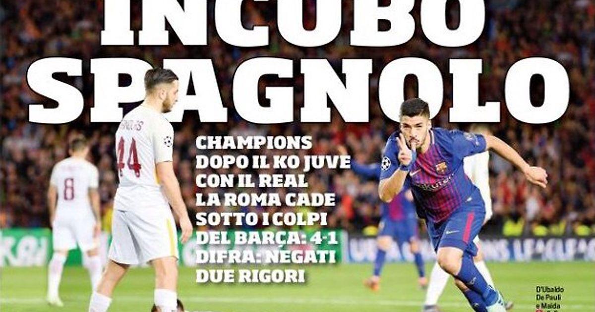 Лига Чемпионов, после поражения «Юве» с «Реалом», «Рома» потерпела крах под ударами «Барсы»: 4:1. ДиФра: «Не дали два пенальти».