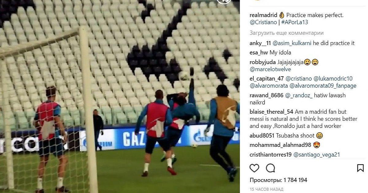 Роналду пробил через себя на тренировке перед матчем с «Юве». Видео