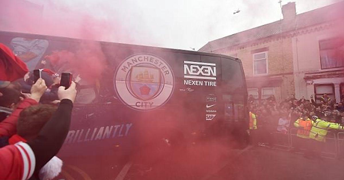 «Ливерпулю» вменяется использование фанатами пиротехники и бросание предметов. А также будет рассмотрено нападение болельщиков «красных» на автобус «Сити».