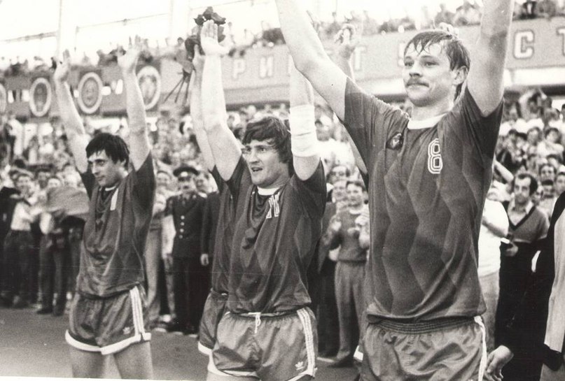 После финального матча КЧ-1989. Слева направо: Шевцов, Каршакевич, Тучкин.