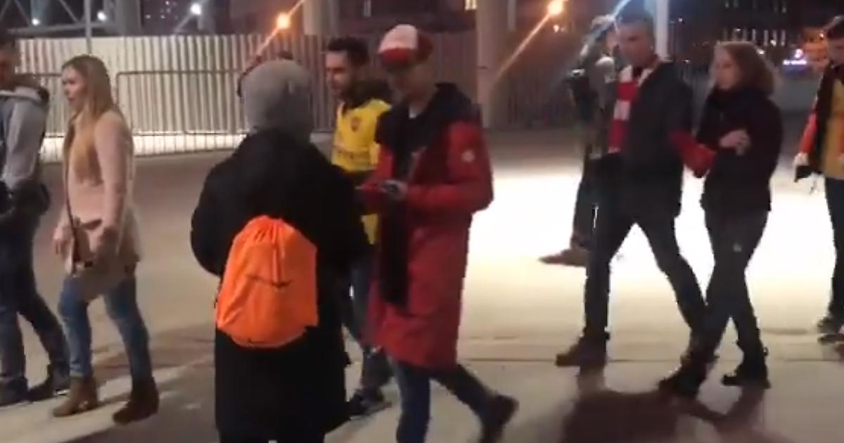 Фанам «Арсенала» раздают шапки-ушанки перед стадионом
