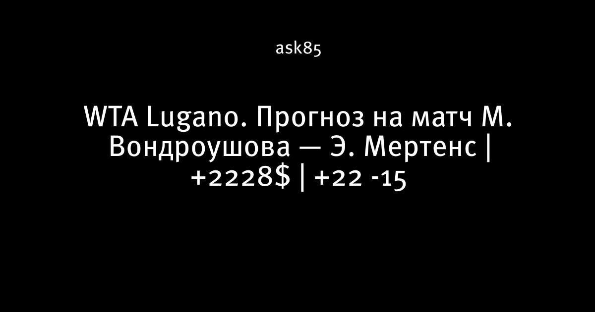 WTA Lugano. Прогноз на матч М. Вондроушова — Э. Мертенс | +2228$ | +22 -15