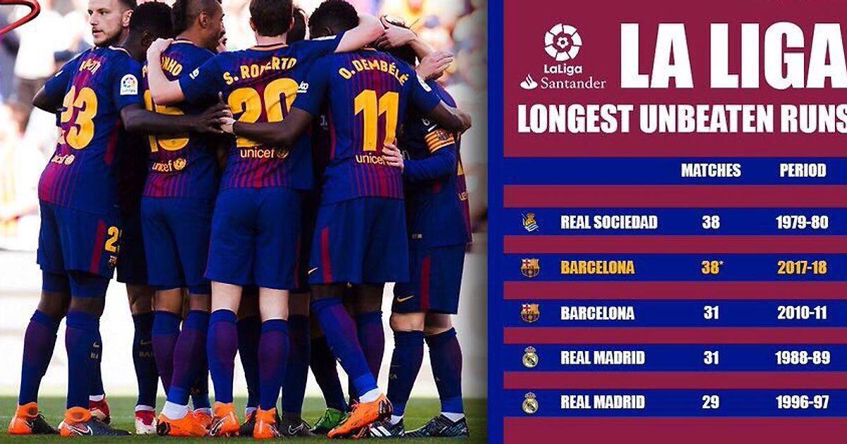 Сейчас у "Барселоны" и у "Реала Сосьедад" (79/80 год) по 38 матчей без поражений подряд.