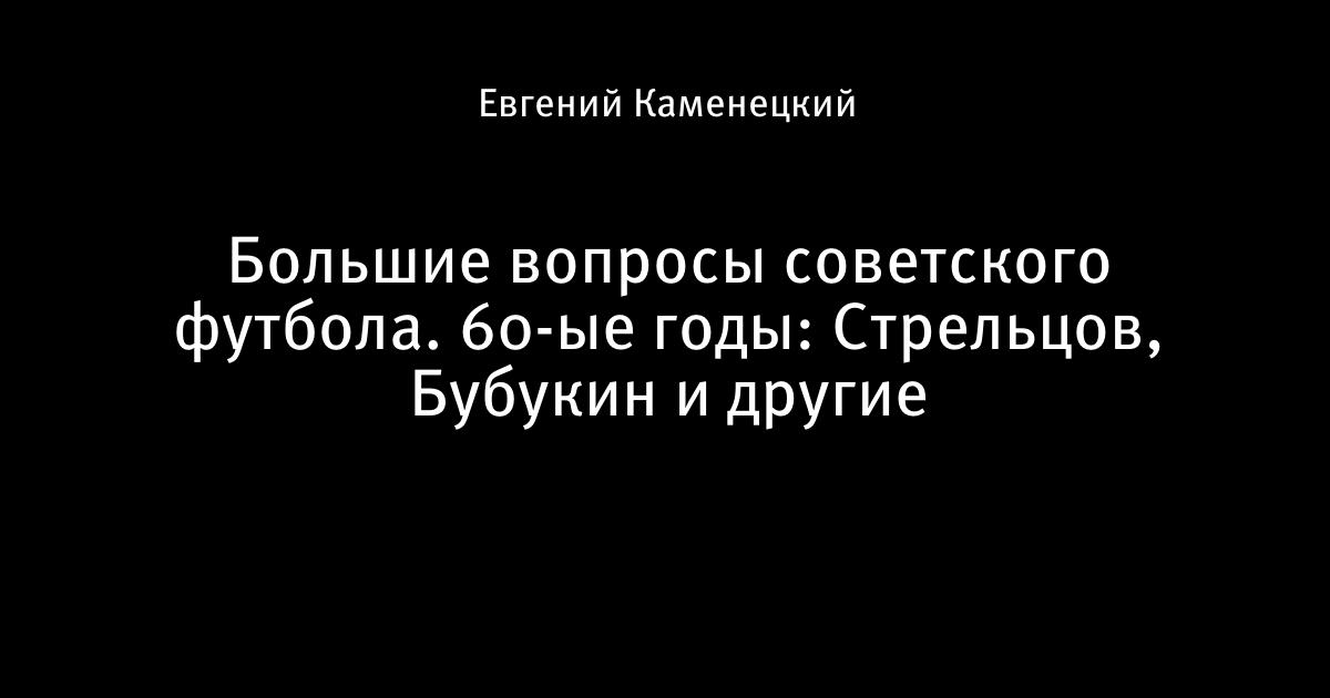 Большие вопросы советского футбола. 60-ые годы: Стрельцов, Бубукин и другие