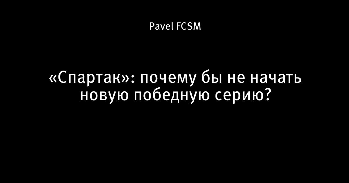 Все серии когда-нибудь заканчиваются. Плохие, хорошие. И начинаются новые. Почему бы «Спартаку» не начать новую победную серию с кубкового полуфинального матча против «Тосно» и не довести бы ее до знакового столичного дерби с «Динамо» 13 мая?